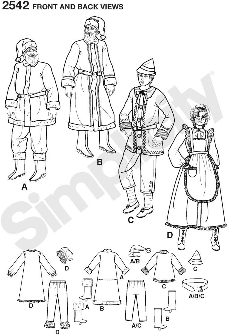 Simplicity 2542 Santa Elf And Mrs Santa Sewing Pattern For Adults Christmas Costume By Wrights Sizes Bb L Xl