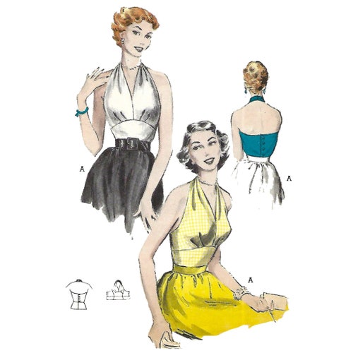 1950s Wrap Halter Top Sewing Pattern Size S Bust 30 32 Pdf Etsy